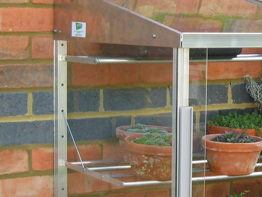 Das Anlehn-Gewächshaus Growhouse ist mit 3 mm Sicherheitsglas (ESG) ausgestattet, das bis zu fünfmal stärker als normales Floatglas und sogar zehnmal stärker als Horti-Blankglas ist. ESG Sicherheitsglas gilt als sehr schlagfest und windsicher.