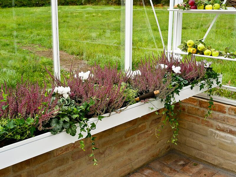 Der Anzuchttisch kann Längsseitig, so wie auch am hinteren Giebel montiert werden. Mit Erde Befülllt für den Anbau oder zum Aufstellen von Töpfen, für das Anziehen von Setzlingen, mit dem Tischanbau sparen Sie sehr viel Platz und haben ausreichend Arbeitsfläche.
