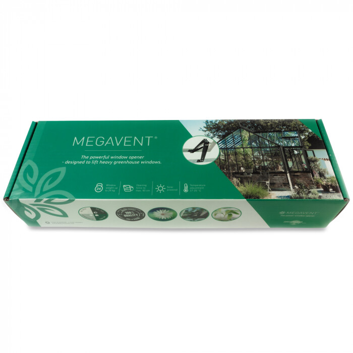 Dieser automatische Dachlüfter ist für Alu- und Holzgewächshäuser geeignet. Der Dachlüfter ist ein starker und leistungsfähiger Öffner und funktioniert komplett stromlos. Megavent® ist mit großen und kraftvollen Federn ausgestattet, um große Fenster halten zu können - sogar bei starkem Wind. Er reguliert die Temperatur und die Raumluft im Inneren des Gewächshauses, wenn die Temperaturen zu hoch werden. Dieser sorgt für eine starke Durchlüftung und passt sich an die optimale Umgebungstemperatur an. Die gewünschte Temperatur ist bequem durch das Drehen des Thermozylinders einzustellen. Durch die praktischen Dachlüfter bieten Sie Ihren Pflanzen optimale Wachstumsbedingungen.