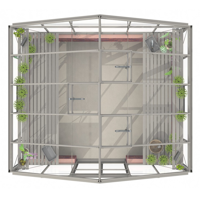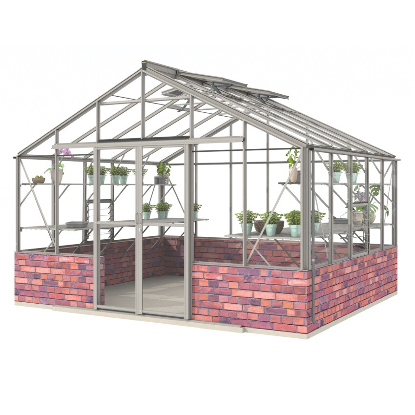 Mit seiner imposanten Größe und einer 121 cm breiten verschließbaren Doppelschiebetür ist das Gewächshaus Regal Dwarf Wall wirklich eine Oase in Ihrem Garten. Die optional lieferbare Tische und Regalen sind in der Höhe verstellbar und mit Diagonal-Verbinder ausgestattet, damit Sie den Gewächshausraum maximal nutzen können.