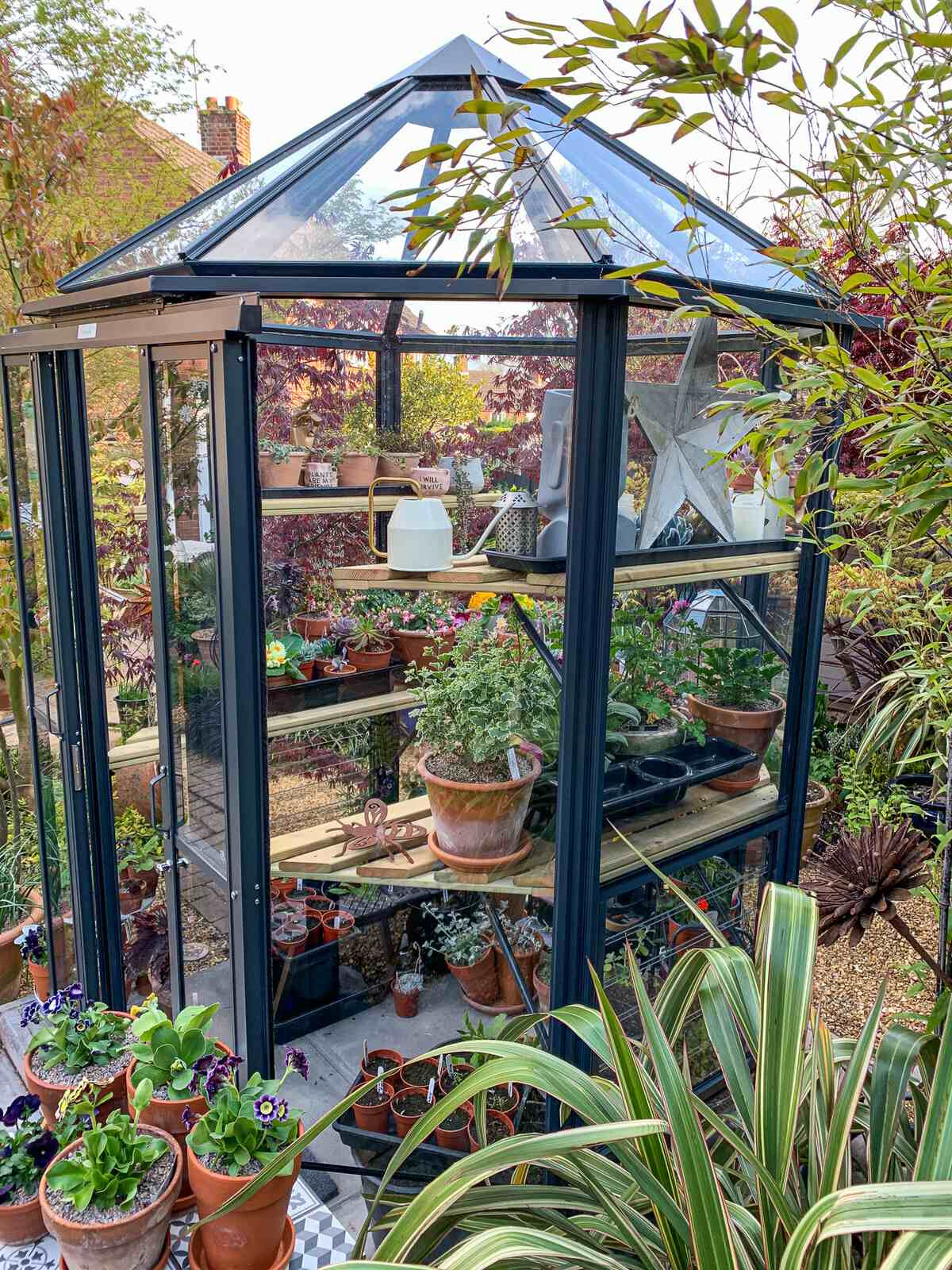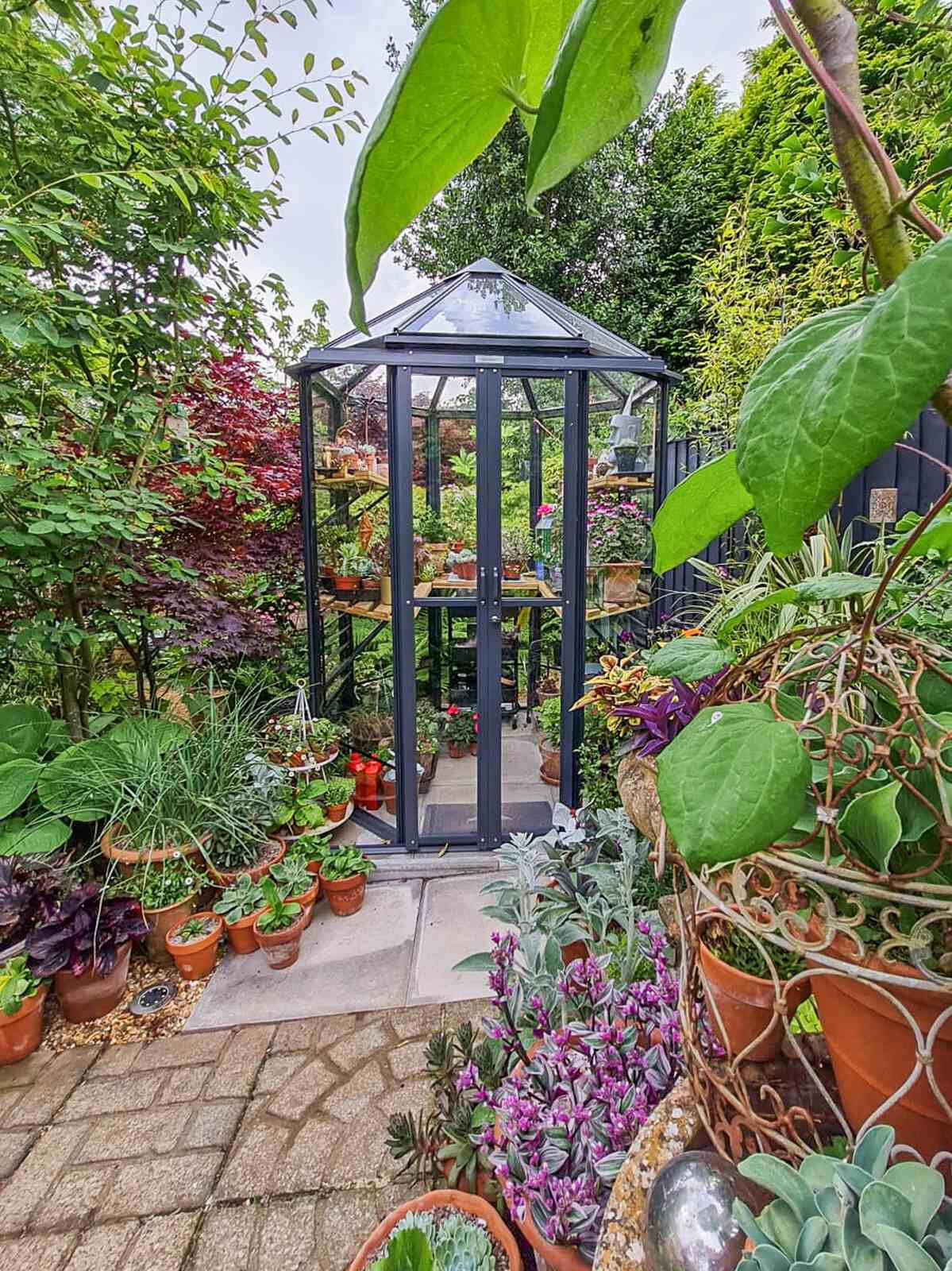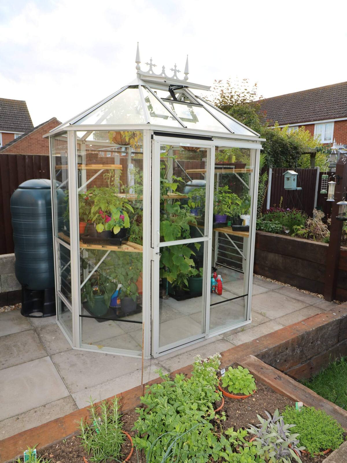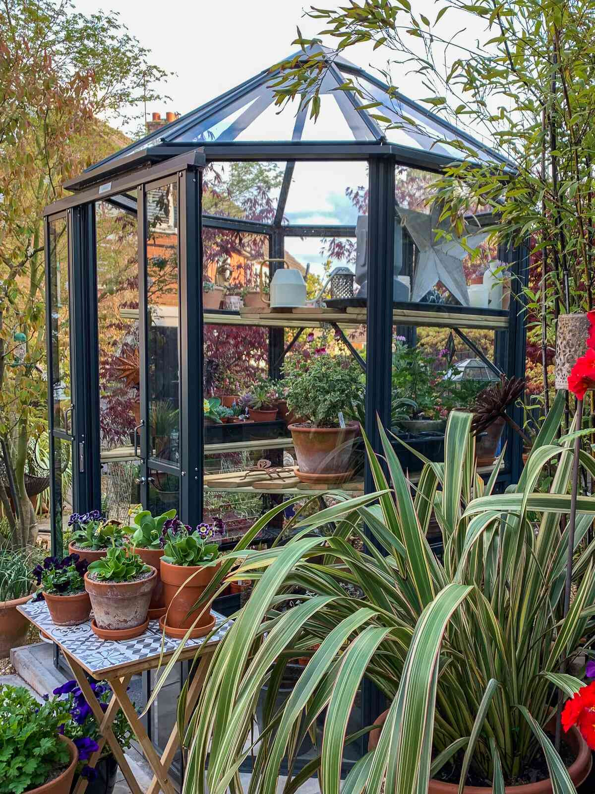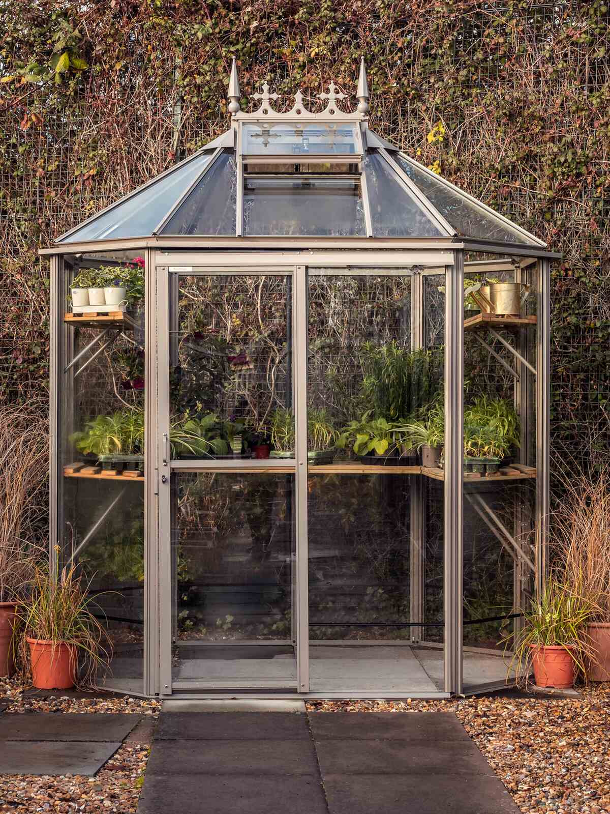 Ein sehr elegantes und geräumiges Gewächshaus, vor allem in der Höhe! Das Gewächshaus Renaissance ist in seiner kleinsten Ausführung ein so genanntes 'Oktogon' mit einem Querschnitt von 171 cm. Je nach Modell ausgeführt mit einer 60 oder 120 cm breiten verschließbaren Doppelschiebetür. Dieses Gewächshaus braucht nur relativ wenig Platz, aber mit einer Traufhöhe von 195 cm ist es natürlich phänomenal geräumig.