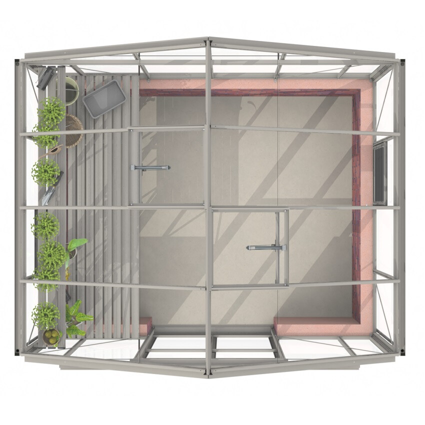 Das Gewächshaus Rosetta ist ideal für den begeisterten Hobbygärtner oder Gärtnerei geeignet. Das Gewächshaus Rosetta ist mit einer Breite von 321cm überraschend geräumig. Mit einer 120 cm breiten verschließbaren Doppelschiebetür ist das Gewächshaus Rosetta eine zugängliche Oase in Ihrem Garten. Die optionalen Tische und Regale sind in der Höhe verstellbar.