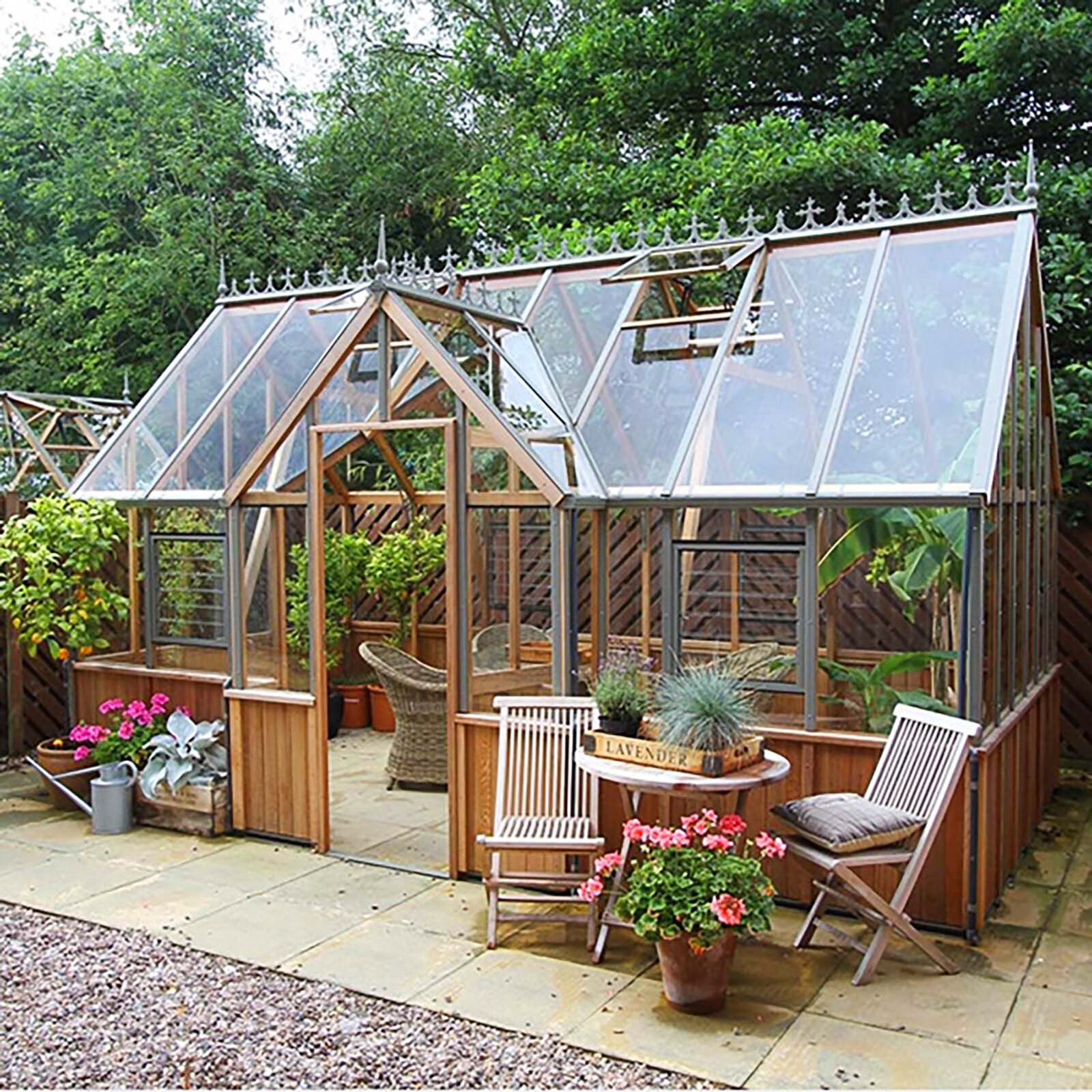 So werden die Vorteile von Zedernholz im Inneren mit den Vorteilen von noch wetterfesterem Aluminium an der Außenseite in einem Hybrid-Gewächshaus kombiniert.