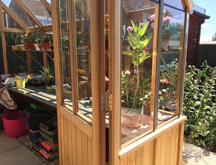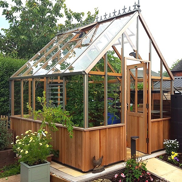 Das viktorianische Holz-Gewächshaus Cheltenham Halfboard ist Teil der Alton EVO Reihe, somit beinhaltet es alle Vorzüge, die Altons EVO Gewächshäuser so beliebt machen - verbunden mit der Schönheit des Zedernholzes und der modernen Einfachheit von pulverbeschichtetem Aluminium.