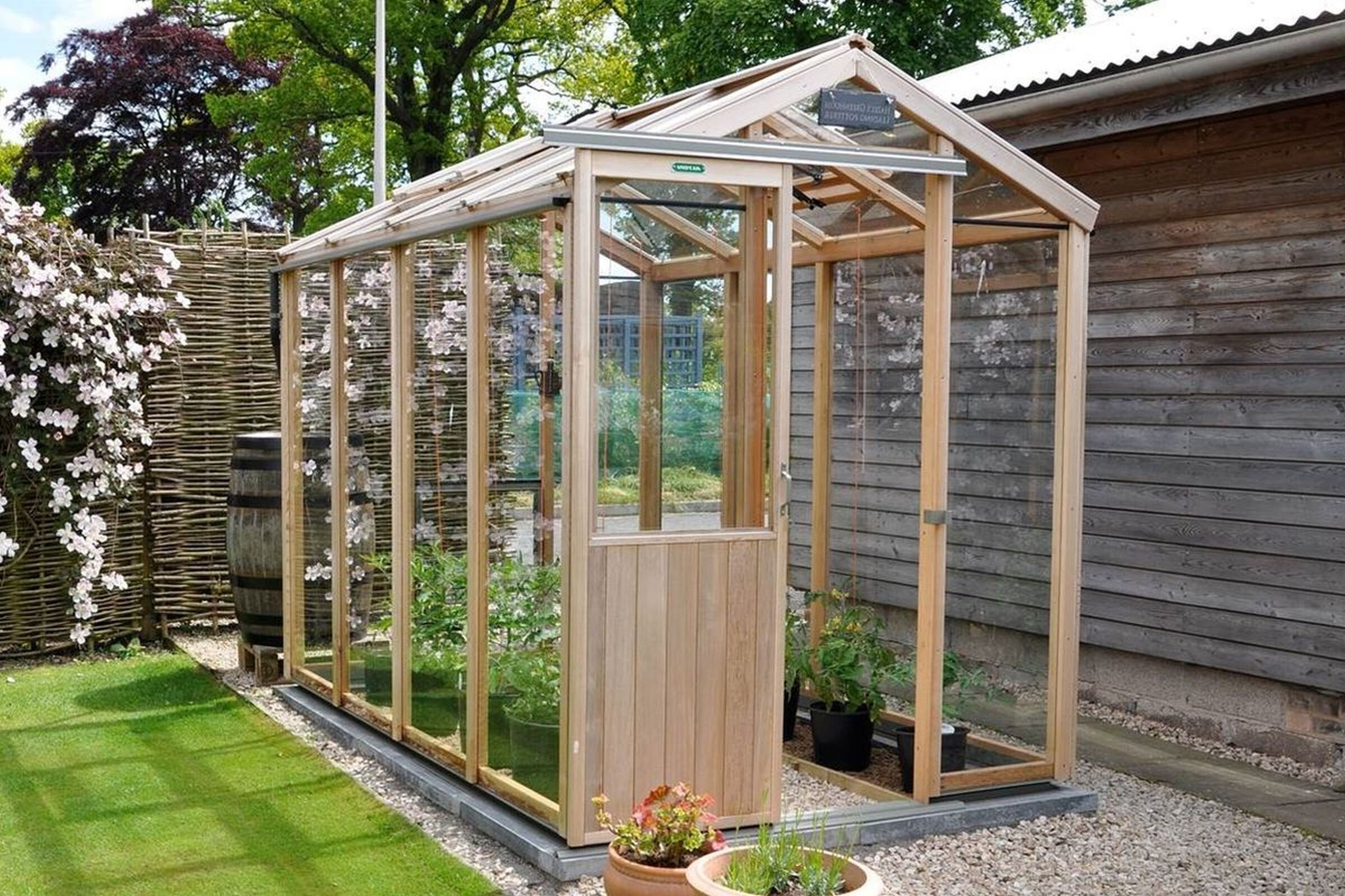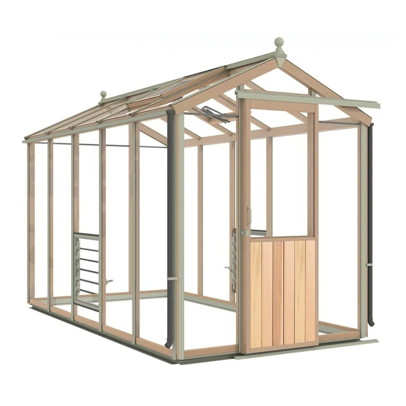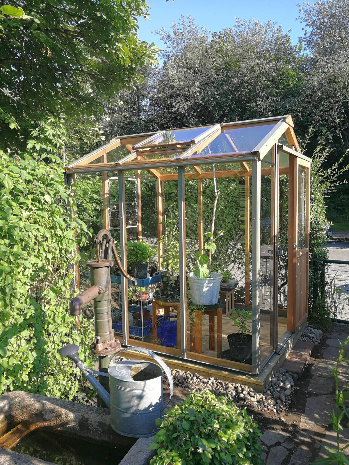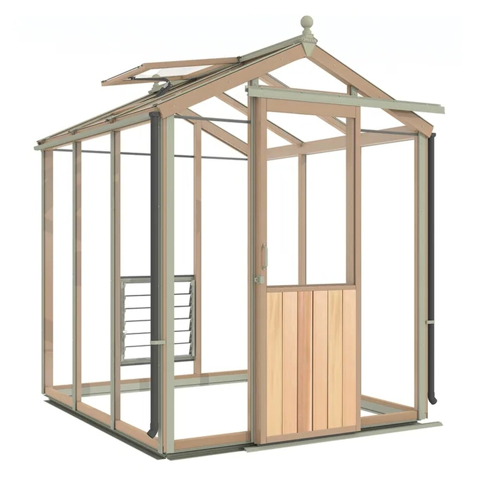 Das Gerüst dieses Gewächshauses ist aus hochwertigem und langlebigem Zedernholz gefertigt und durch innovative Holzverbindungen sehr stabil. So entsteht ein Gewächshaustyp, der nicht nur sehr ansehnlich, sondern auch besonders praktisch und nachhaltig konzipiert ist.