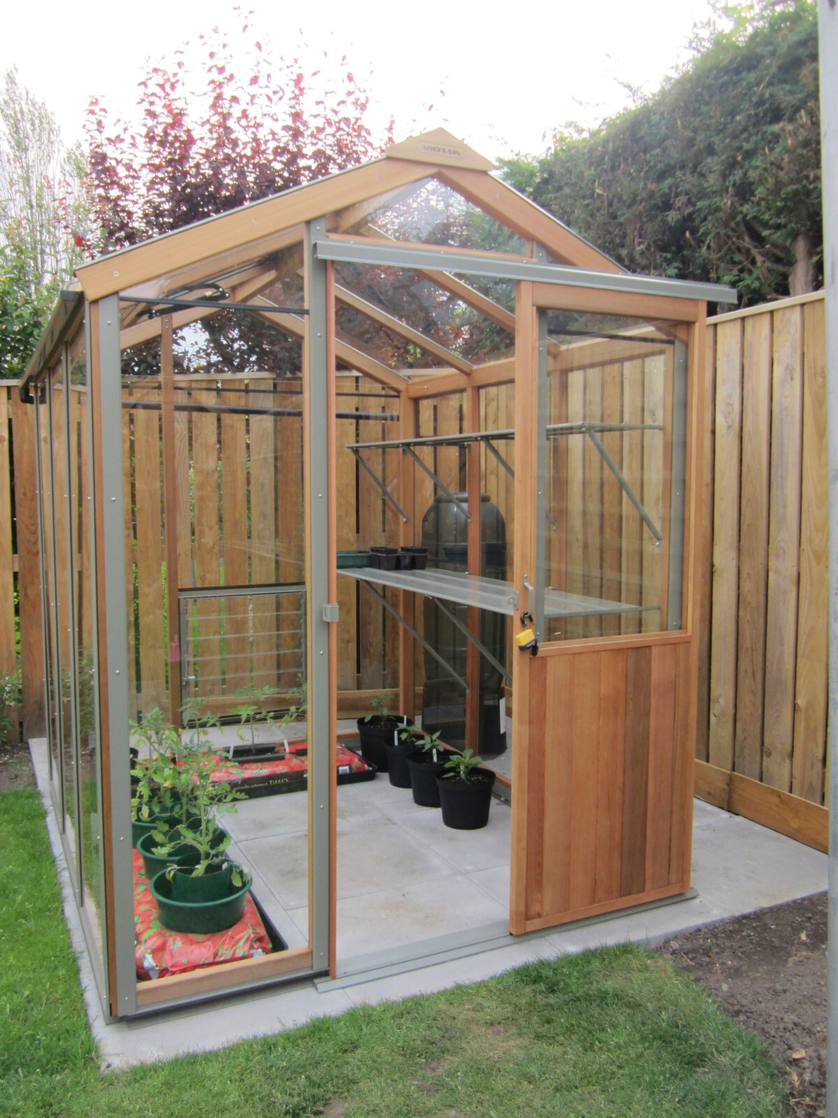 Hartglas gehört bei diesem Gewächshaus zur Norm, sowie eine gute Belüftung (Lamellenfenster an der Seitenwand und je nach Länge eine oder mehrere, automatische Dachfenster), ein integriertes Alu Fundament, (also keine Zeder, die den Boden berührt) sowie Dachrinnen und Fallrohre. Sehr praktisch sind auch der erstklassige Tisch sowie das Pflanzregal. Diese können auf Wunsch mitgeliefert werden.