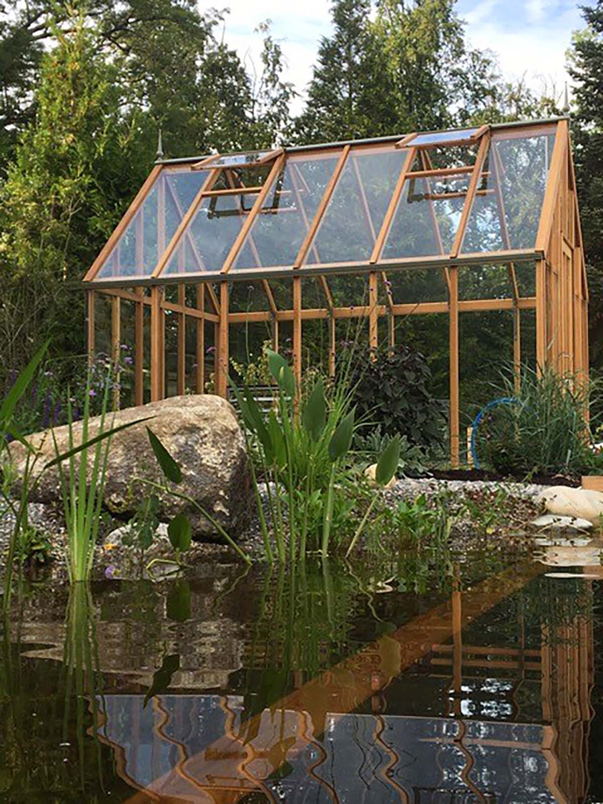 So werden die Vorteile von Zedernholz im Inneren mit den Vorteilen von noch wetterfesterem Aluminium an der Außenseite in einem Hybrid-Gewächshaus kombiniert.
