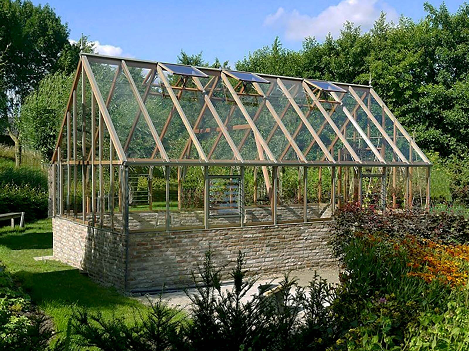 So werden die Vorteile von Zedernholz im Inneren mit den Vorteilen von noch wetterfesterem Aluminium an der Außenseite in einem Hybrid-Gewächshaus kombiniert.
