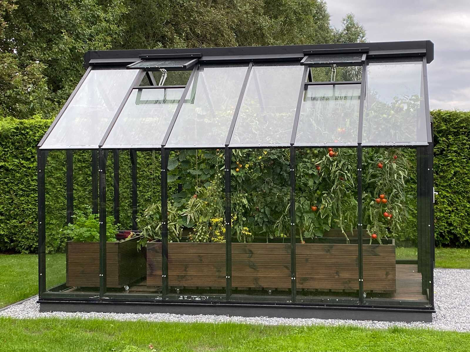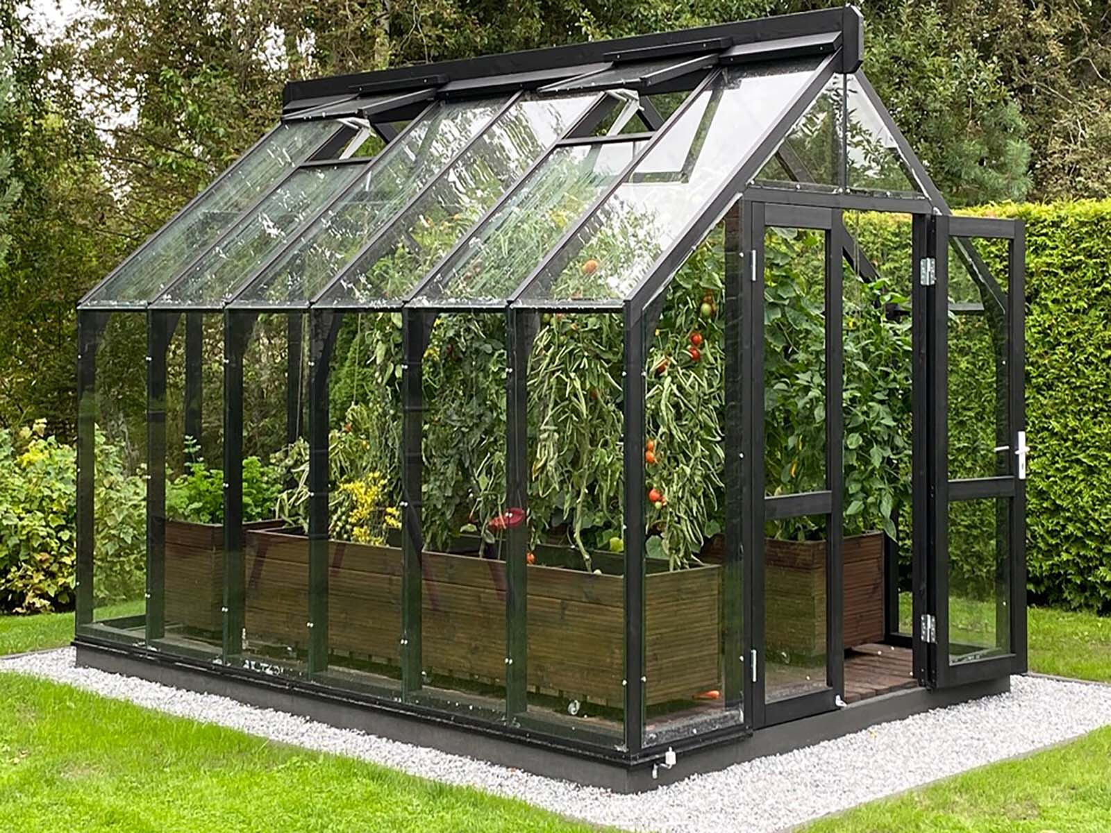 Das Gewächshaus Lausanne ist ein attraktives und hochwertiges Gewächshaus aus Holz. Hergestellt aus robusten Holzprofilen, welche aus haltbarem Thermoholz gefertigt wurde. Durch die modernen Materialien verleiht das Gewächshaus einen exklusiven Look. Die Verglasung besteht aus 4 mm dickem Hartglas (ESG). Sein robuster und starker Rahmen macht ihn zu einer Investition, die ein lebenlang hält.