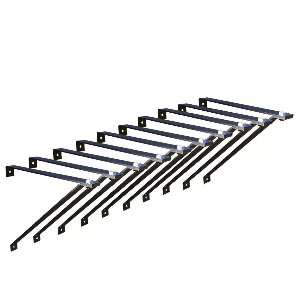 Robuste Regalträger aus pulverbeschichtetem Aluminium (RAL 7016 – Anthrazit), speziell entwickelt für die einfache und stabile Montage in Ihrem Gewächshaus. Die Lieferung erfolgt inklusive passender Schrauben und Muttern zur sicheren Befestigung am Gewächshausprofil.