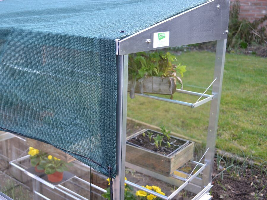 Die Schattiernetze reduzieren das Licht im Gewächshaus um 70% und halten die Sommertemperaturen niedrig. Allerdings kann das Schattiernetz auch im Winter als zusätzliche Dämmschicht über dem Dach verwendet werden.