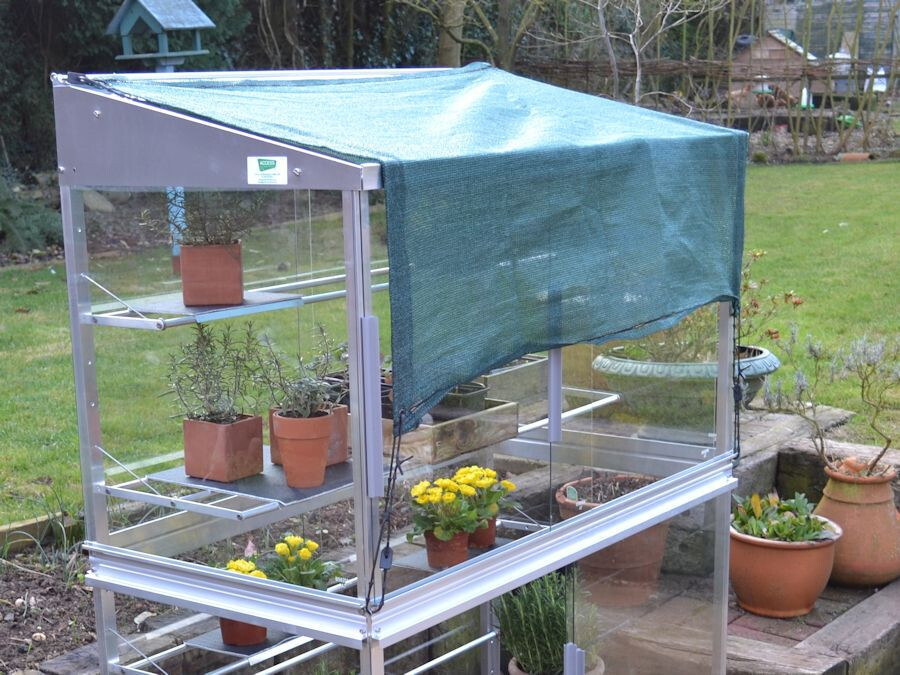 Die Schattiernetze reduzieren das Licht im Gewächshaus um 70% und halten die Sommertemperaturen niedrig. Allerdings kann das Schattiernetz auch im Winter als zusätzliche Dämmschicht über dem Dach verwendet werden.