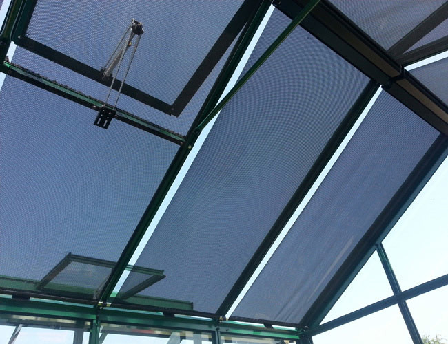 Die Flexibilität des Gewebes verhindert das Funktionieren der automatischen Dachfenster nicht. Sie können diese Schattierungsrollos deshalb an jeder Sektion des Gewächshauses benutzen.