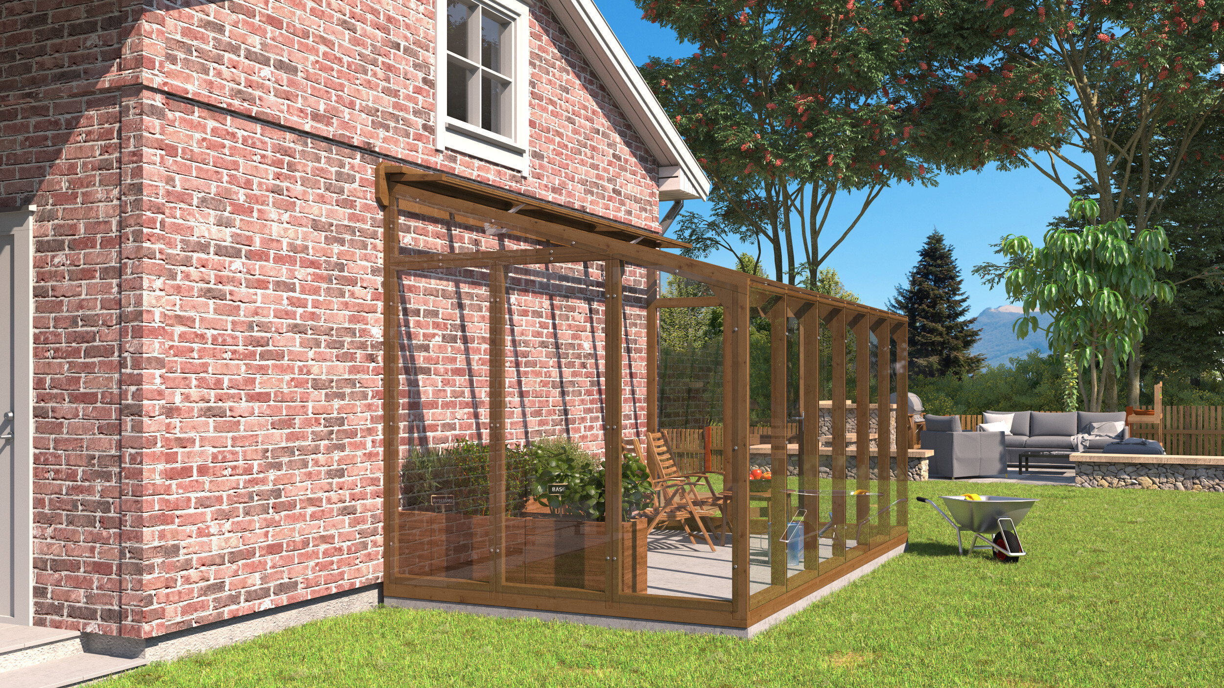 Das Anlehngewächshaus Thun ist ein hochwertiges und aktraktives Holzgewächshaus. Es wird aus robusten Holzprofilen und starkem sowie haltbarem Thermoholz hergestellt. Die modernen Materialien verleihen das Gewächshaus einen exklusiven Look. Die Verglasung besteht aus 4 mm dickem Hartglas (ESG). Sein robuster und stabiler Rahmen macht ihn zu einer Investition, die ein lebenlang hält.